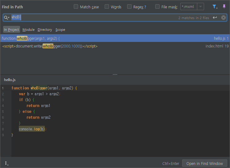 프로젝트 안에서 찾기 (단축키 : Ctrl+Shift+F)