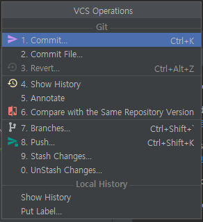 서버 저장소에 Push는 단축키 (Ctrl+Shift+K)를 입력한다.