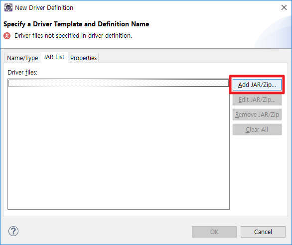 [Oracle Thin Driver] 항목 선택 한 후>>상단의 [JAR List] 탭 클릭 >>