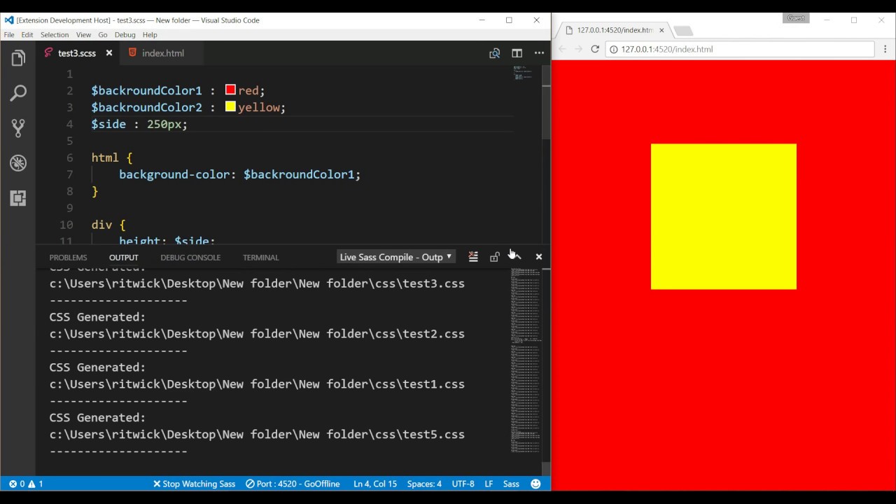 하단의 Watching Sass 클릭하여 활성화 한다. 파일이 저장될때마다 자동으로 컴파일 됨.