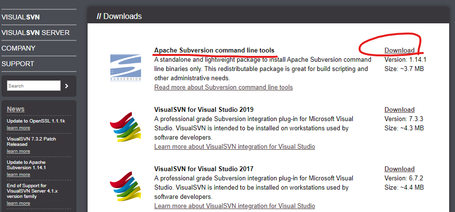 위 주소로 접속하여 Apache Subversion command line tools를 다운로드하여 적절한 곳에 압축 해제 한다.