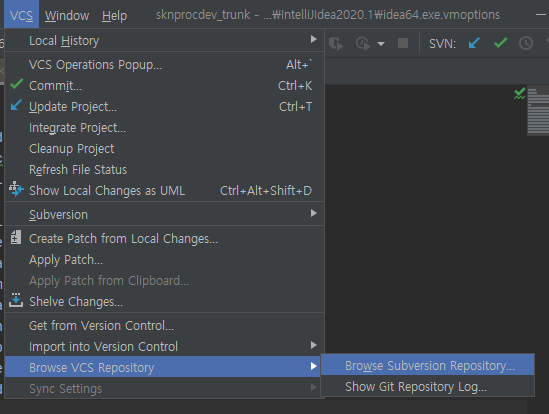 VCS > Browse VCS Repository > Browse Subversion Repository...