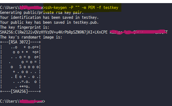 ssh-keygen -P "" -m PEM -f 원하는키명