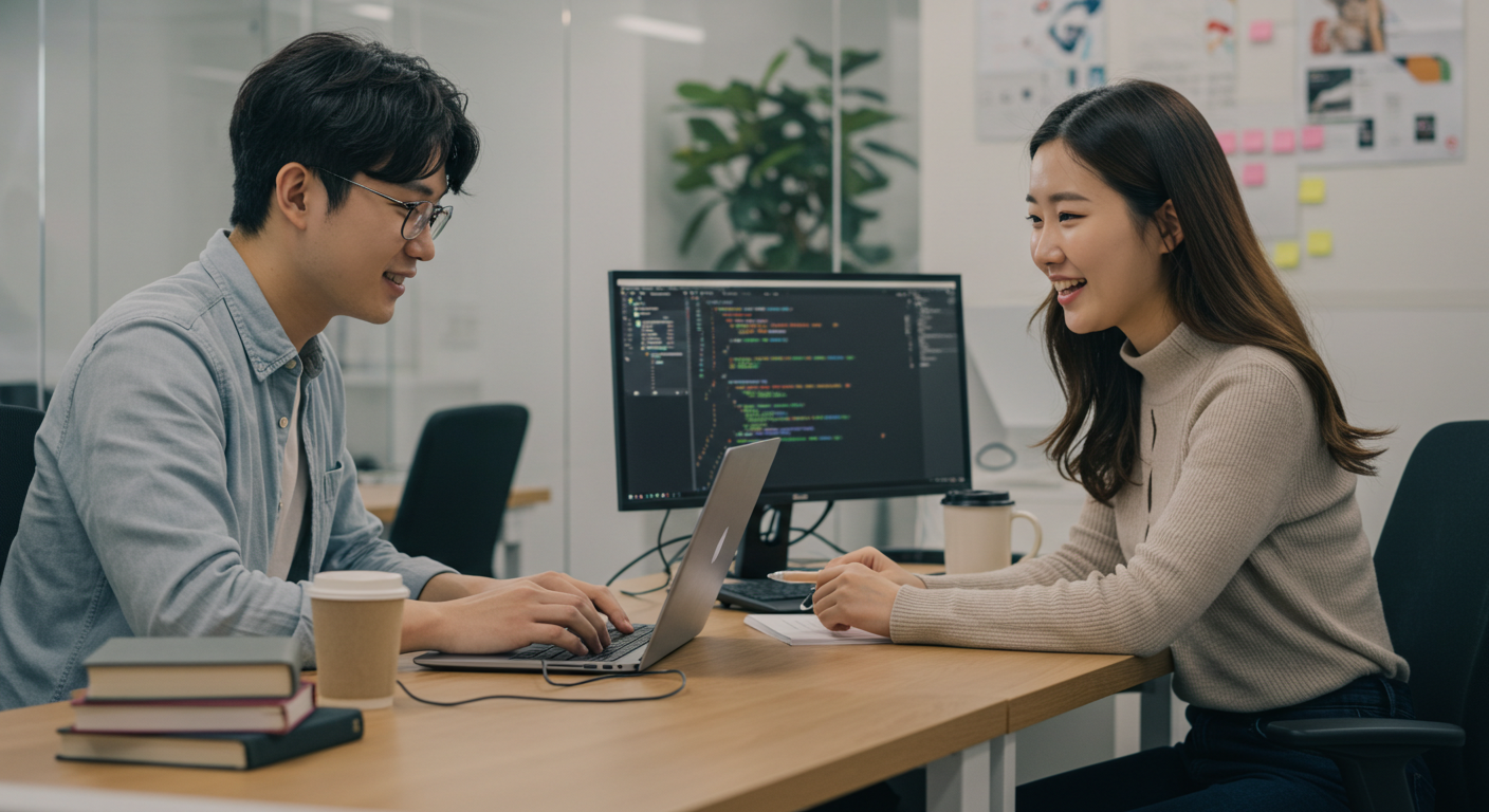 두 며이 함께 작업하면서 아이디와 해결방법을 바로 공유하고 실시간 피드백을 주고받아 실수를 줄이고 빠른 해결책을 찾을 수 있다.